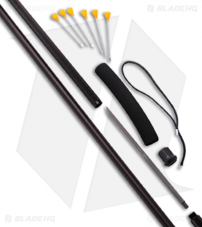 The SURVIVAL STAFF is a versatile, multi-purpose survival and defense tool that includes two 6061-T6 aluminum tubes, a hand ground 440C stainless steel blade and six blow gun darts. Also includes foam handle, hardened steel spike, connector, mushroom cap and rubber boot. The Survival Staff can be configured for use as a hiking staff, lance, sword cane/walking stick, swagger stick and blow gun.