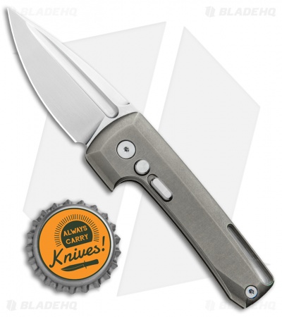 The Harlock is a stout and stylish EDC automatic knife from D Rocket Designs. This model has a blasted titanium handle and a satin finished blade. The clean modern design is accentuated by satin polished hardware, safety, and push button. An integrated lanyard slot adds a distinctive finishing touch.