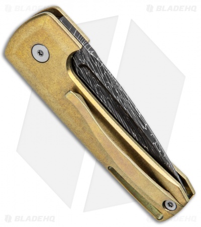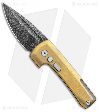 The Harlock is a stout and stylish EDC automatic knife from D Rocket Designs. This model has a gold titanium handle and a damascus blade. The clean modern design is accentuated by satin polished hardware, safety, and push button. An integrated lanyard slot adds a distinctive finishing touch.