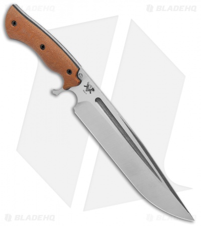 This Cave Bear fixed blade knife comes equipped with a natural micarta handle and black micarta liners. Its blade has a two-tone finish.