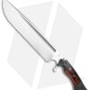 The Dark Timber Knives Devil’s Horn is one intimidating piece. This heavy duty blade gives off quite a menacing vibe as you unsheathe it with robust action. The 11.75″ drop point blade has a two-tone satin and stonewash finish with a well-defined blood groove. Its weight is nicely dispersed throughout the knife on account of the full tang construction. The handle is made with strong micarta and maple burl wood with stainless steel hardware.