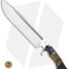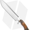 The Dark Timber Knives Devil’s Horn is one intimidating piece. This heavy duty blade gives off quite a menacing vibe as you unsheathe it with robust action. The 11.75″ drop point blade has a two-tone satin and stonewash finish with a well-defined blood groove. Its weight is nicely dispersed throughout the knife on account of the full tang construction. The handle is made with strong micarta and maple burl wood with stainless steel hardware.