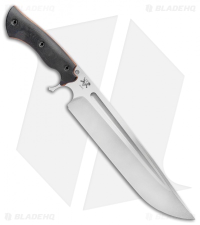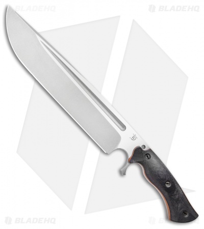 This Devil’s Horn fixed blade knife comes equipped with a black micarta handle and natural micarta liners. Its blade has a two-tone finish.