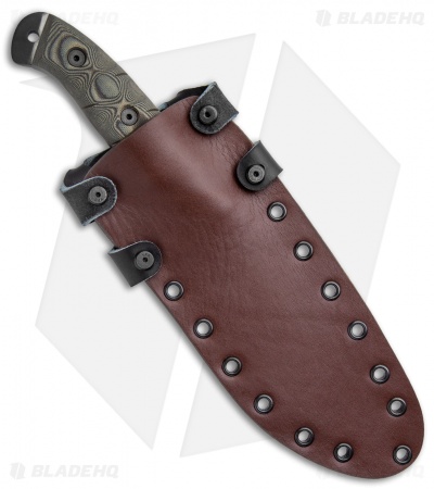 - Leather/kydex sheath for vertical belt carry.