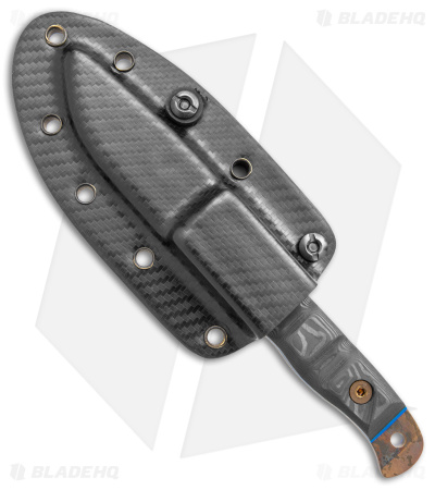 - Marble carbon fiber handle scales with blue accents.