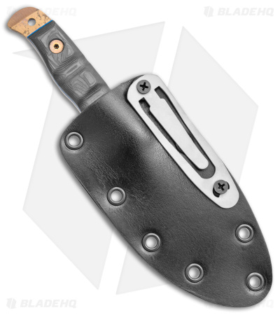 - Leather/kydex sheath for vertical belt carry.