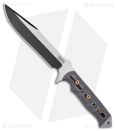 The Dawson Knives Mojave 7 is a versatile field and fighting knife equipped with a full-tang Bowie-esque blade. It’s made of top shelf materials by master craftsmen. The MagnaCut steel used in the blade is known for high toughness, high wear resistance, and high corrosion resistance. The Specter finish has a dark, hollow ground area that’s harder than the lighter area through differential hardening. Differential hardening creates a fantastic edge and makes an already crazy-tough steel even stronger. The handle is fitted with grooved scales for a firm grip in any environment. The pommel is pointed for crushing, breaking, or as a blunt force weapon. This knife will never let you down!