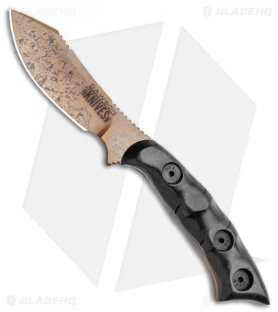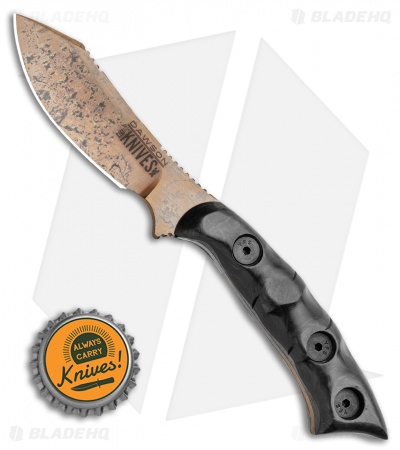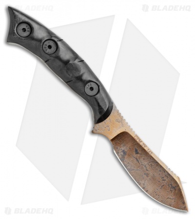 The Snakebite from Dawson Knives is a compact and concealable fixed blade that packs a serious punch. This model has a Dawson Arizona Copper finish and a black marble carbon fiber handle. It offers a versatile blade profile with a sharp tip and a curved skinner belly. The handle scales are contoured and grooved for a secure grip in all conditions. Item includes a kydex sheath for inside-pocket carry.