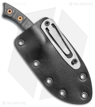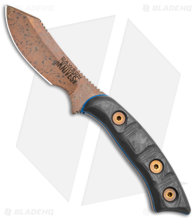 The Snakebite from Dawson Knives is a compact and concealable fixed blade that packs a serious punch. This model has a Dawson Arizona Copper finish and a black marble carbon fiber handle. It offers a versatile blade profile with a sharp tip and a curved skinner belly. The handle scales are contoured and grooved for a secure grip in all conditions. Item includes a kydex sheath for inside-pocket carry.