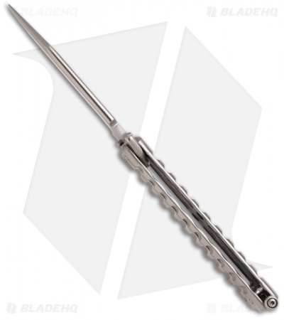 This is the newest butterfly knife from Darrel Ralph. It is a Mid-Tech knife, which is great news for those of us that simply don’t have the funds for the high dollar customs. This knife has a stainless Bowie style blade and titanium handles. This an impressive butterfly knife at a great low price.