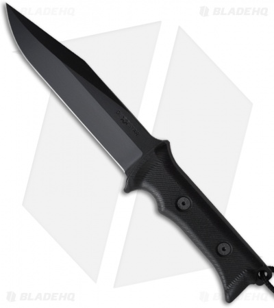 This DUSTAR Knives Dimona has a black handle and a black blade with a plain edge.