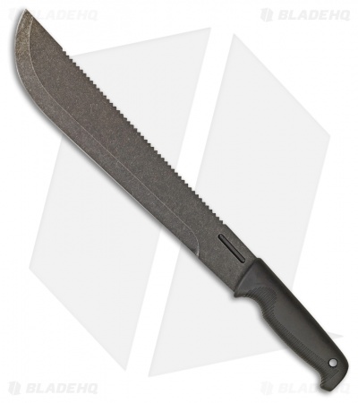 - Sandvik stainless steel blade has a black stonewash finish and a sawback.