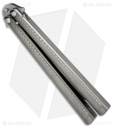 The Talisong Flipper from Custom knifemaker Eldon Talley offers smooth flipping action and an impressive design. This model has latch-less gray anodized titanium handles with channel construction and diamond-pattern knurled faces. It has a weehawk style blade with a hollow grind and a hand rubbed satin finish. Add the flawless design of the Custom Talisong Flipper to your collection today!