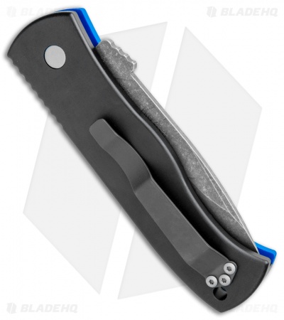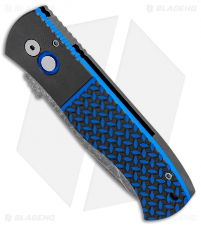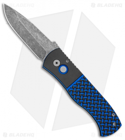 This CQC-7 features a two-tone black and blue G-10 handle with an acid stonewash finished drop point blade. The Emerson/Pro-Tech CQC-7 Auto collaboration combines the classic folding design of the CQC-7 and the convenience of an automatic knife. The action on this knife is exactly what you expect from Pro-Tech: it is superb!