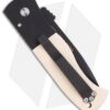 This “Tuxedo” style CQC-7A knife features ivory Micarta inlays and a matching push button insert with a black anodized aluminum frame. Includes a pocket clip. The spear point style blade is black finished 154-CM stainless steel.