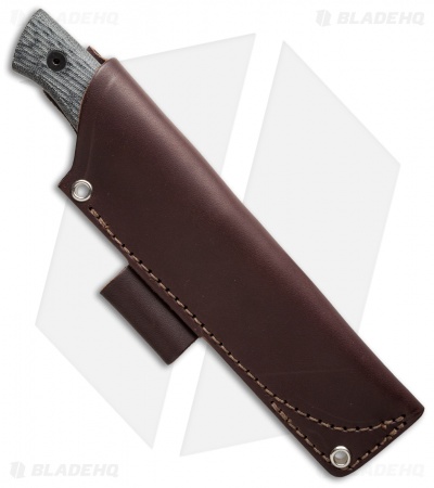 Fiddleback Forge has created a line of production knives based on several of their most popular models. The Bushfinger is a best-seller with a pointy drop point blade that is at home in the wilderness setting. It’s full-tang blade is stonewashed CPM-S35VN stainless steel and is outfitted with diagonally grooved black canvas Micarta scales. Includes a premium leather sheath.