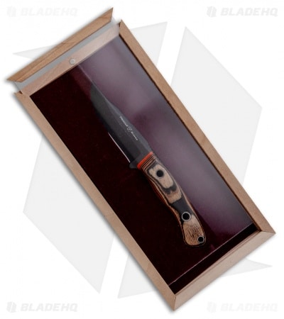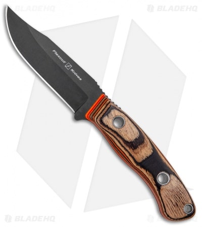 Flexcut is typically known for their whittling and carving knives, along with leather strops and polishing compounds. But what you didn’t know is that they also make pretty sweet fixed blade knives as well! The Hawthorne Knife Collection series Drifter is a prime example of their excellent fixed blade knives. It features a cryogenically treated 1095 steel blade with a black oxide finish to help prevent rust and corrosion. The handle is made from G-Wood with orange G-10 liners. Included in the impressive display box is a black leather sheath for conveniently carrying the knife.