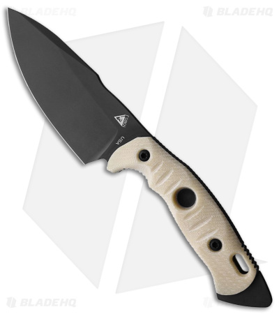 - Ivory paper micarta handle with large lanyard hole.