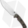 This model of the Tier1-C fixed blade has a stonewashed, CPM-3V blade featuring a green camo, canvas micarta handle with white liners.
