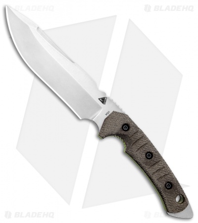 This model of the Tier1-C fixed blade has a stonewashed, CPM-3V blade featuring an OD green, canvas micarta handle with green liners.