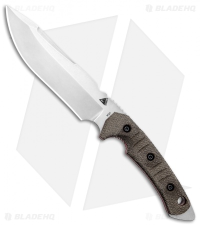 This model of the Tier1-C fixed blade has a stonewashed, CPM-3V blade featuring an OD green, canvas micarta handle with red liners.