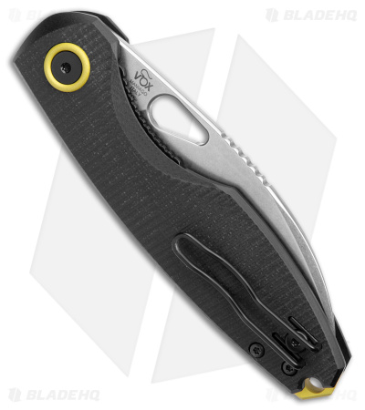 - Black Nero G-10 scales with a yellow-anodized backspacer.