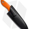 The Vox Design Njall knife delivers performance and comfort in the field and stunning looks everywhere it goes. It has a wide profile clip point blade with a high-utility curved cutting edge and a choil that accommodates your index finger for choking up when performing fine cutting tasks. Contoured orange G-10 scales, fastened with tube pins, offer the refinement of a custom level knife. The Njall is ready for the hunt and outdoor recreation with a leather belt carry sheath.