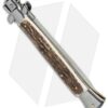 This 11″ Italian Stiletto from Frank B. features classic stiletto style with a stag handle and a satin finished dagger blade. Frank B creates some of the finest authentic Italian stilettos available on the market today. This 11″ model has a stag handle with stainless steel bolsters. Brass pins and liners add a classic touch to the design. The blade comes in a dagger style with a plain edge and a satin finish. Add the premier Italian knife-maker to your collection today with an authentic Italian stiletto from Frank B.