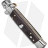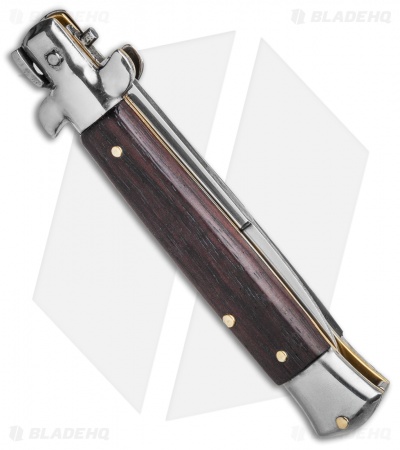 This 7.5″ Italian Stiletto from Frank B. features classic stiletto style with a dark Palisander wood handle and a polished bayonet blade. Frank B. creates some of the finest authentic Italian stilettos available on the market today. Brass pins and liners add a classic touch to the design. Add the premier Italian knife-maker to your collection today with an authentic Italian stiletto from Frank B.