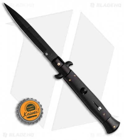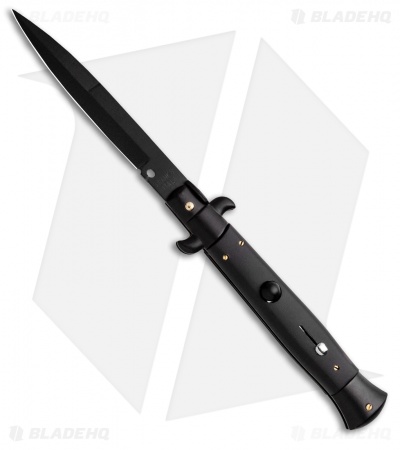 This 9″ Italian Stiletto from Frank B. features classic stiletto style with a black handle and a black finished bayonet blade. Frank B creates some of the finest authentic Italian stilettos available on the market today. This 9″ model has a stealth black handle with black teflon coated bolsters and black liners. The blade comes in a bayonet style with a plain edge and a black finish. Add an authentic Italian stiletto from Frank B to you collection today!
