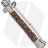 This 9″ Italian Stiletto from Frank B. features classic stiletto style with a stag horn handle and a polished bayonet blade. Frank B creates some of the finest authentic Italian stilettos available on the market today. This 9″ model has a stag horn handle with stainless steel bolsters and brass liners. Brass pins add a classic touch to the design. The blade comes in a bayonet style with a plain edge and a polished finish, with intricate filework along the spine. Add the premier Italian knife-maker to your collection today with an authentic Italian stiletto from Frank B.