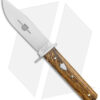 - Satin finished drop point blade made of 1095 steel.