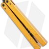 This Aztec Gold balisong trainer features a black blade and gold handles.