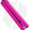 This Flamingo Pink balisong trainer features a black blade and pink handles.