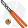 This Desert Orange balisong trainer features a black blade and orange handles.