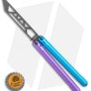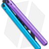 This SAHARA Blurple balisong trainer features a black blade and blue and purple handles.