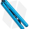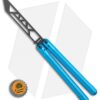 This SAHARA balisong trainer features a black blade and sky blue handles.