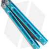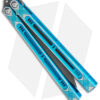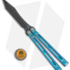 This Heibel Knives Menace Balisong Knife is a mid-tech from Blade Show East 2022! It has a modified tanto blade made of black stonewashed RWL-34 and has blue titanium handles.