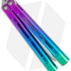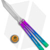 This Heibel Knives Menace Balisong Knife is a mid-tech from Blade Show East 2022! It has a modified tanto blade made of satin RWL-34 and has rainbow titanium handles.