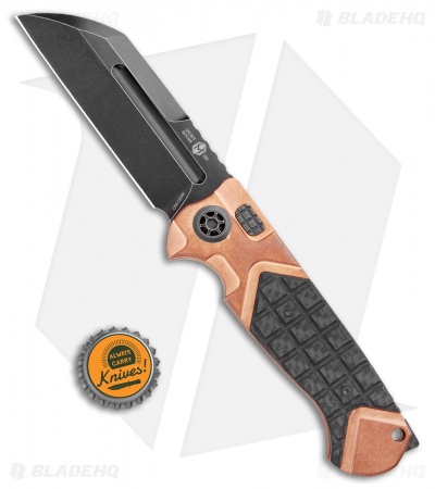 ADV and Heretic Knives have teamed up to offer you a fantastic fully automatic version of the Andre De Villiers Butcher. This model is built with a battleworn black sheepsfoot blade and a copper handle with frag carbon fiber scales. Item includes a tip-up roller ball clip.