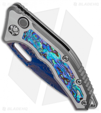 Heretic Knives Custom Medusa Automatic Knife Ti/Abalone (3″ Blue Damascus)