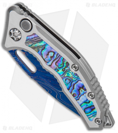This Custom Medusa knife is dressed out with a blue damascus steel blade and a hand rubbed satin titanium handle with abalone inlays. The Heretic Knives Medusa offers a sturdy and dependable automatic knife with a rock solid titanium. The rich blue damascus blade comes in a recurve tanto profile with a compound grind. Item includes a titanium pocket clip with a ball bearing tip.