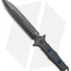 - Carbon fiber handle scales over a jimped full tang and blue titanium hardware.