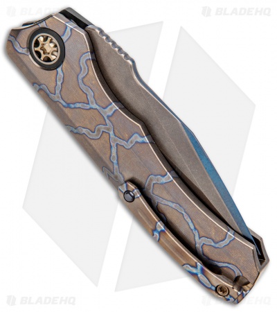 This Wraith automatic model features a san mai blade made . It has a carbon fiber and titanium handle and titanium hardware.