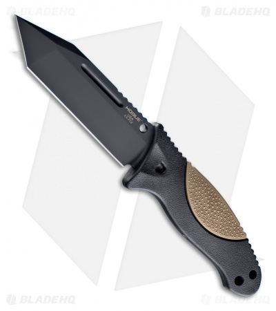 This model has a Tanto blade and black handle with a Flat Dark Earth rubber overmold.
