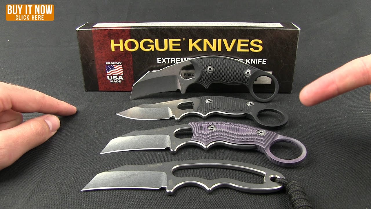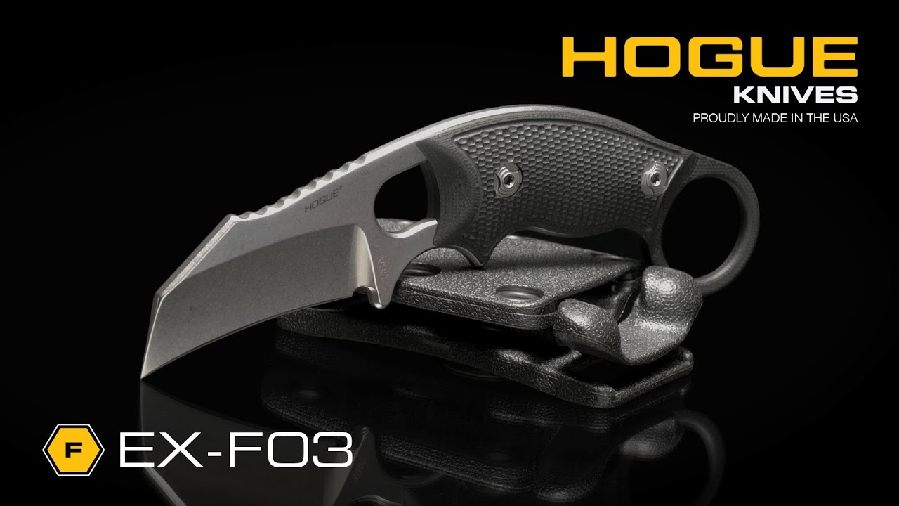 Using the skeletonized EX-F03 platform as the base, this Hawkbill Karambit from Hogue Knives features a contoured and textured black G-10 handle with finger ring for increased grip and utility. The EX-F03 is an Allen Elishewitz design and every detail of this fixed blade has been thoroughly thought out. The wide handle profile offers additional grip that a thinner design lacks. Two blade styles are available: clip point and hawkbill. An auto retention sheath is included with this EX-F03 knife.