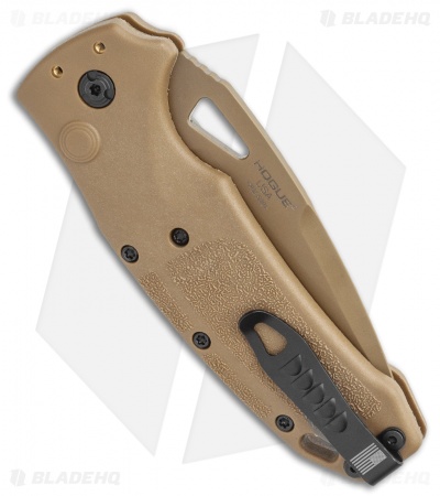 The Sig K320A M17 offers smooth automatic opening action and tight lock up via the lock safety. The front of the handle is a nylon polymer texture for a better grip. The drop point style CPM-S30V blade has a coyote PVD finished blade and a razor sharp partially serrated edge. Item includes a large reversible pocket clip for tip-down or up carry.