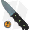 - Black G-10 handle scales with green pins.