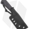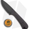 - Black burlap micarta handle scales held to a full tang by black G-10 pins.