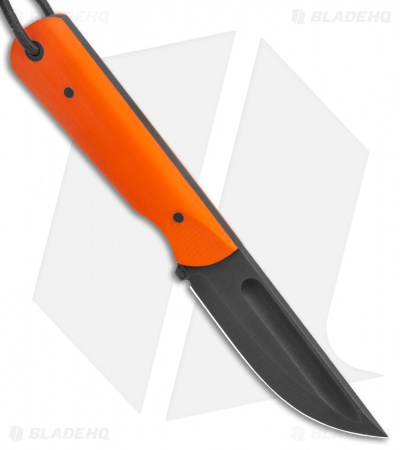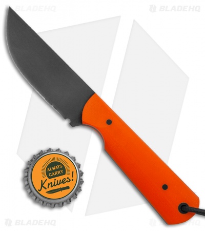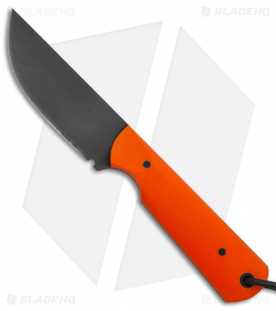 JRs Knives Str8 BK Fixed Blade Knife Chisel Orange G-10 (2.75″ Black)